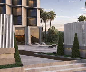 ALCA complements the fencing systems with SMARTIA FC10, a system with aluminium and Woodalux® louvers, placed vertically and creating a minimal result.